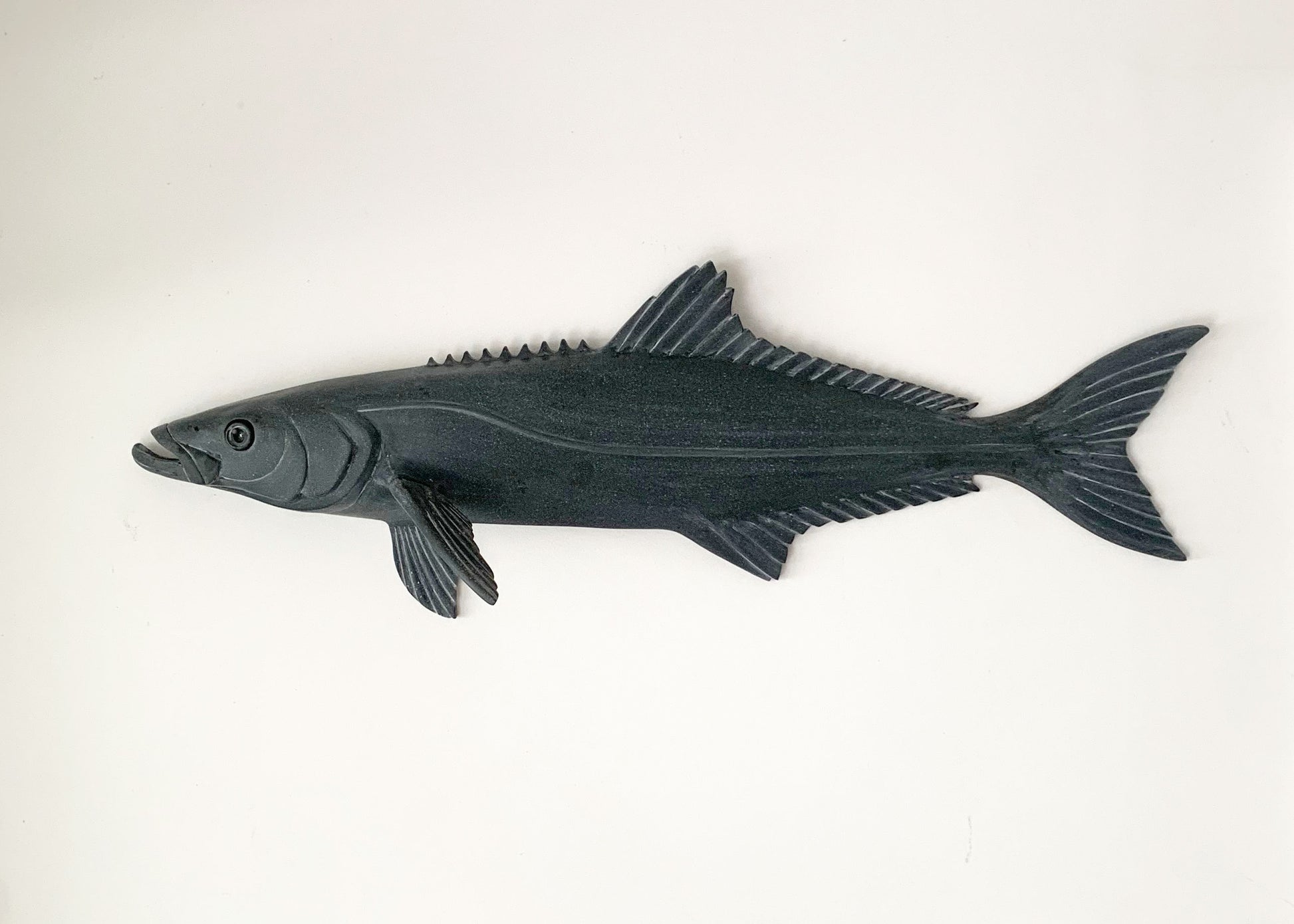 Escultura original do peixe bijupirá ou beijupirá, feita em pedra-sabão por Luiz Augusto Correia de Araujo.